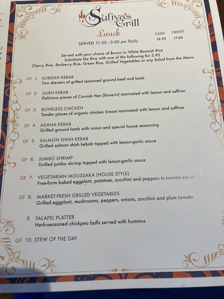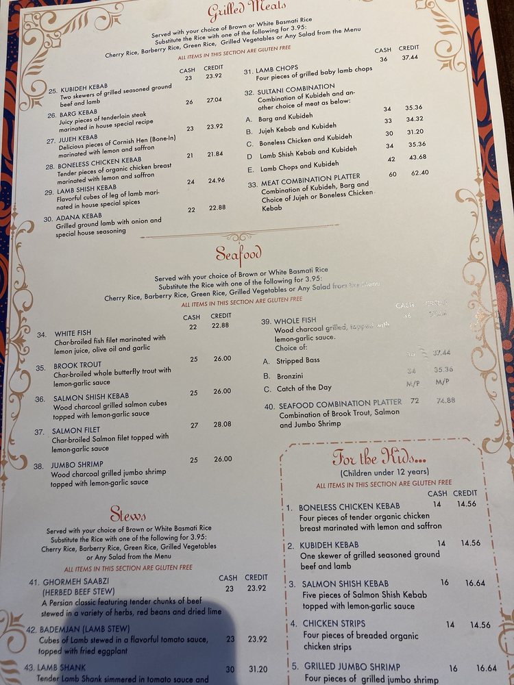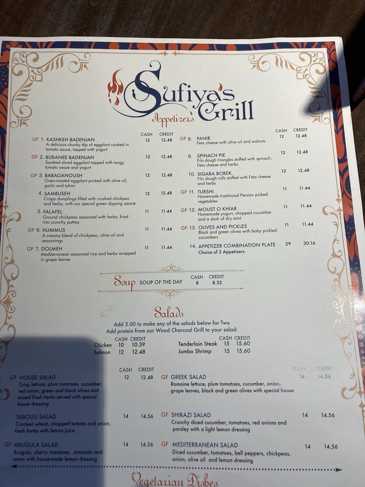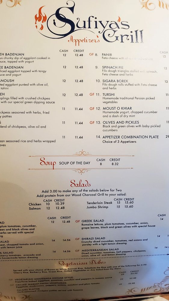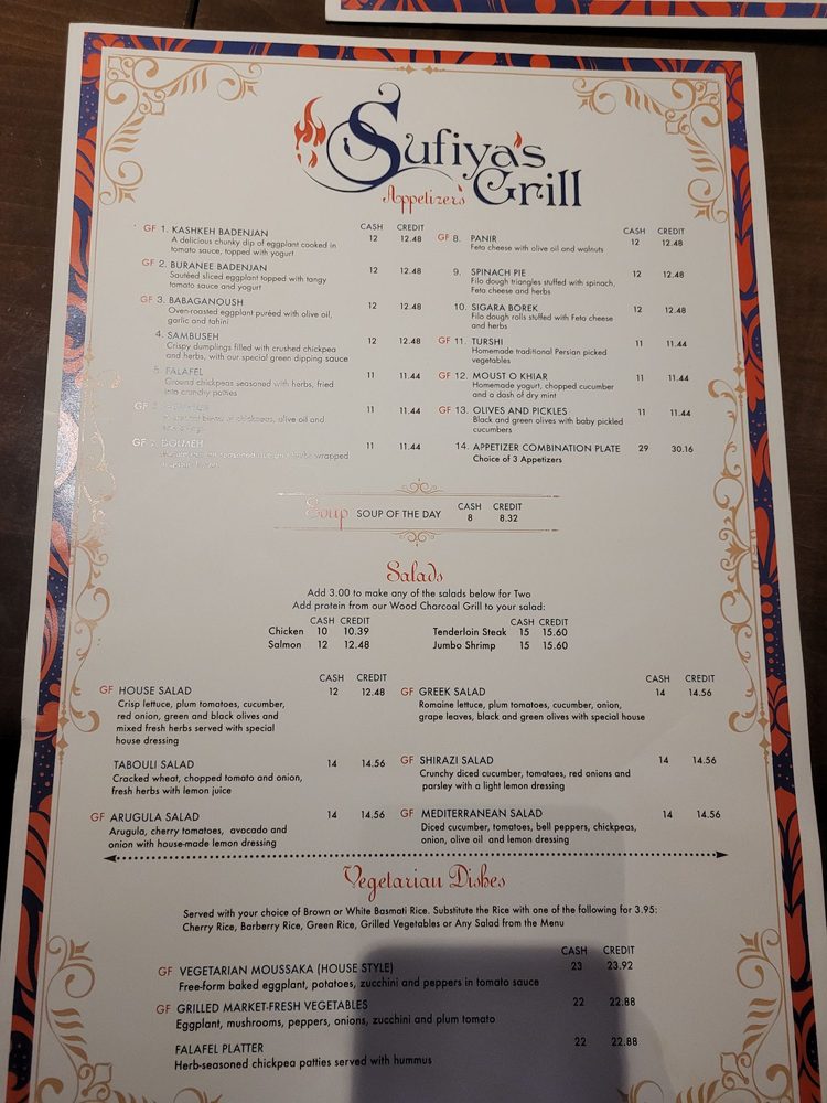 Introducing the menu at Sufiya's Grill in East Meadow, where Middle Eastern flavors shine. From the popular Jujeh Kebab to the Bademjan Lamb Stew, each dish is crafted with care. Appetizers like Turshi and Spinach Pie are perfect for starting your meal. The Shirazi Salad and Mediterranean Salad offer refreshing options for those wanting something lighter. Customer reviews rave about the gluten-free options and generous portions. The Cherry Rice is a must-try, and the Falafel appetizer is highly recommended. The ambiance is cozy and inviting, making it an ideal spot for a delicious meal. Don't miss out on Sufiya's flavorful dishes that will have you coming back for more.